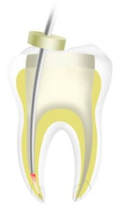 Canalul radicular, inclusiv canalul radicular lateral, este umplut optim prin incalzire si extrudare verticala.